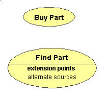Diagramatically, use cases are represented as ovals. They have a title in the center. Additionally, they may list extension points as well.